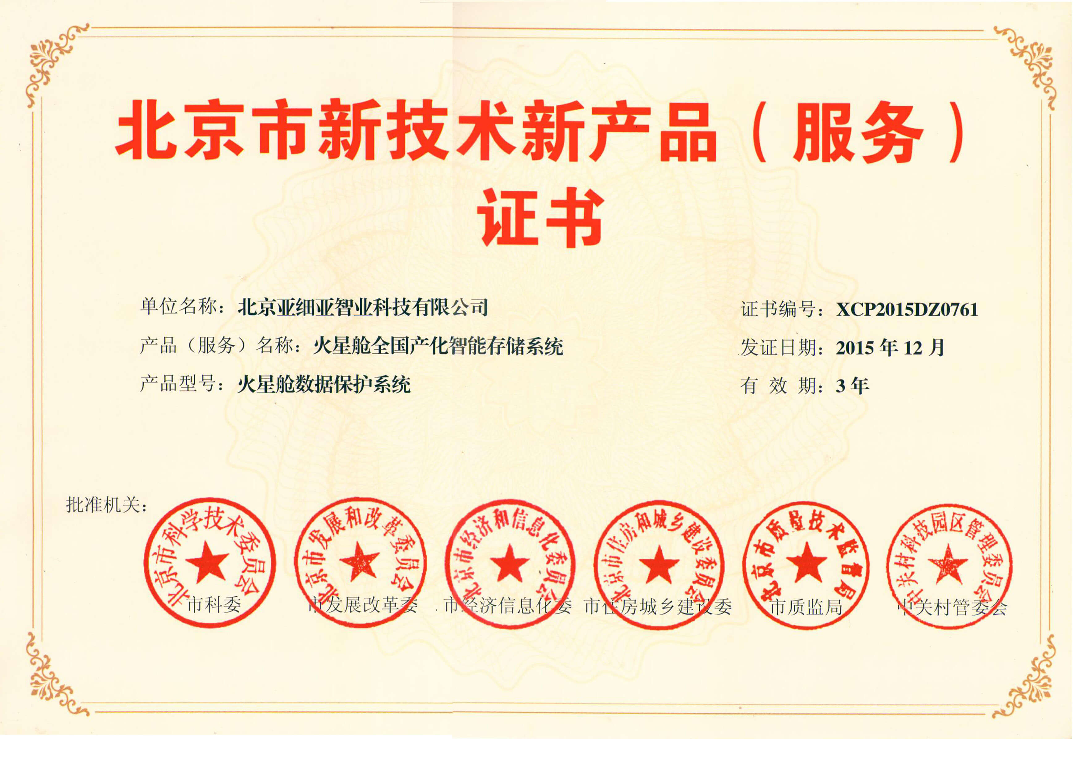 2015年北京市新技術新產品(服務)證書